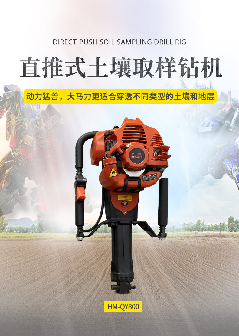 與傳統(tǒng)的手鉆比較,HM-QY800土壤取樣鉆機(jī)鉆取的深度更深、取樣的效率更高,并且取得的是原狀、基本無(wú)擾動(dòng)和壓縮(視地形而定)的土壤樣品。在取樣深度超過(guò)半米、對(duì)土壤樣品的質(zhì)量(原狀、無(wú)擾動(dòng)、無(wú)壓縮)要求較高的項(xiàng)目中,采用該設(shè)備是不錯(cuò)的選擇。